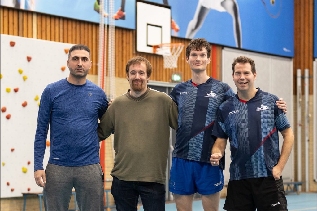 Met een 8-5 overwinning op de Treffers is ons 1e team afgelopen zaterdag kampioen geworden in de 2e divisie landelijk. Karwan, Erik, Hugo en Bob promoveren nu naar de 1e divisie, de één-na-hoogste klasse in het Nederlandse tafeltennis ! Kopman Karwan is in deze competitie ongeslagen gebleven, een ware prestatie. In de komende voorjaarscompetitie kunnen we dus gaan genieten van een nog hoger niveau tafeltennis in de Spreng. Komt allen kijken op 3-feb, 24-feb, 16-maa, 13-apr en/of 20-apr !